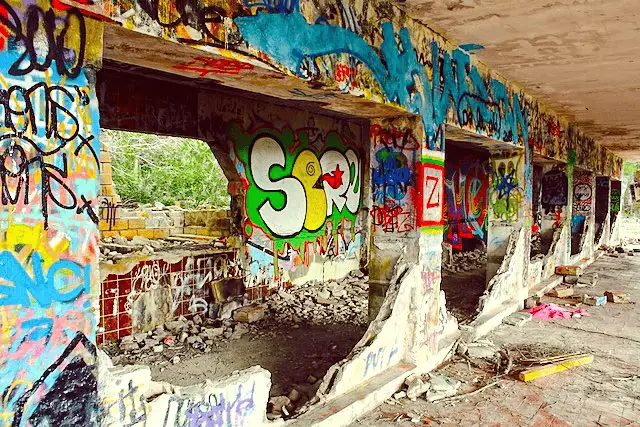 Da allora, il bellissimo luogo abbandonato è stato lentamente recuperato dalla natura. E completamente decorato da artisti di graffiti locali. Con un'esposizione in continua evoluzione di opere d'arte impressionanti (e altre meno impressionanti).